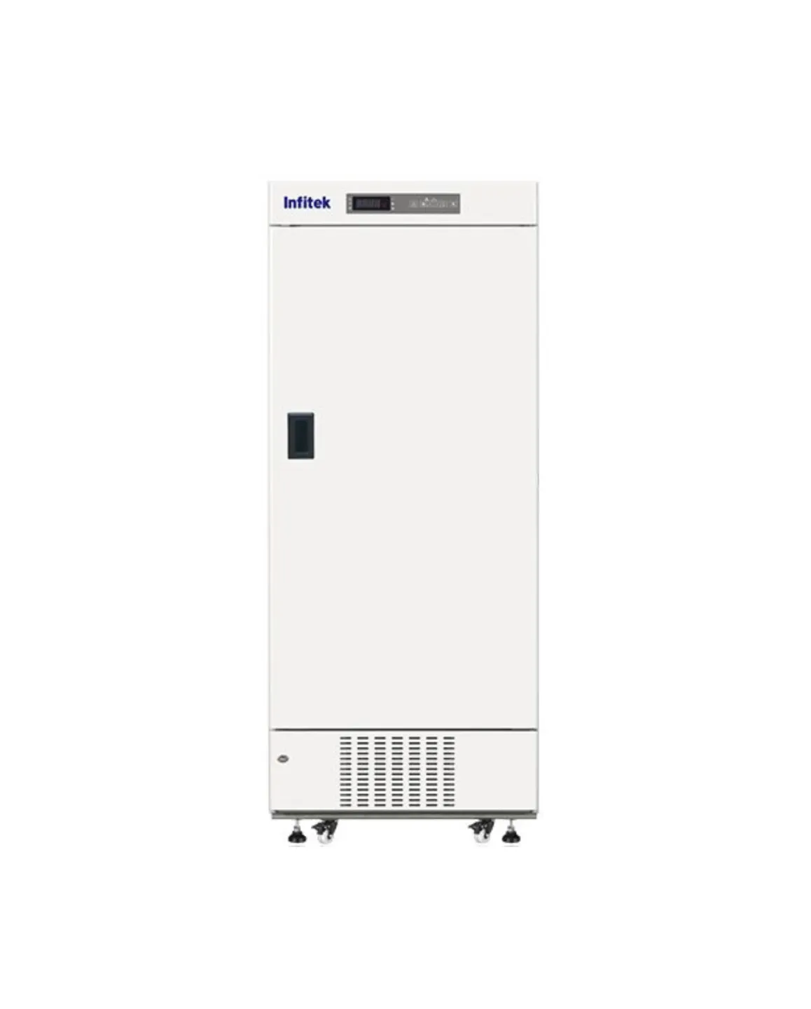 Pharmaceutical Refrigerator from Infitek equipped with a complete temperature alarm system featuring audible and visual alerts for high/low temperature, power failure, and door ajar. Features a forced-air cooling system for stable temperatures and adjustable shelves to safely store vaccines, drugs, and reagents.