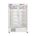 Pharmaceutical Refrigerator from Infitek equipped with a complete temperature alarm system featuring audible and visual alerts for high/low temperature, power failure, and door ajar. Features a forced-air cooling system for stable temperatures and adjustable shelves to safely store vaccines, drugs, and reagents.